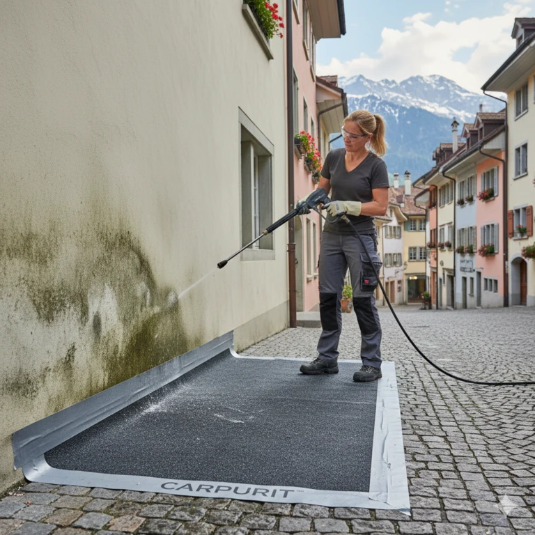 Carpurit ist eine patentierte Umwelttechnologie, die direkt am Gebäudefuss installiert wird. Als wegweisende Cleantech-Innovation der Bauindustrie filtert das System mittels Hochleistungs-Aktivkohle Schadstoffe wie Biozide und PFAS zuverlässig aus dem Fassadenwasser.